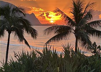 Relax & Enjoy Kauai Sunsets ... Credit: HTA / Tor Johnson [62]This delightful, one bedroom condo on the oceanfront overlooks the spectacular North Shore and Hanalei Bay with 180 degree views. Breathtaking ocean panoramas, colorful sunrises, and stunning sunsets with the famed Bali Hai mountain await you, right from the comfort our your own lanai. Hanalei with its sweeping, sandy beach, wonderful restaurants, and many fun shops are just 10 minutes away.