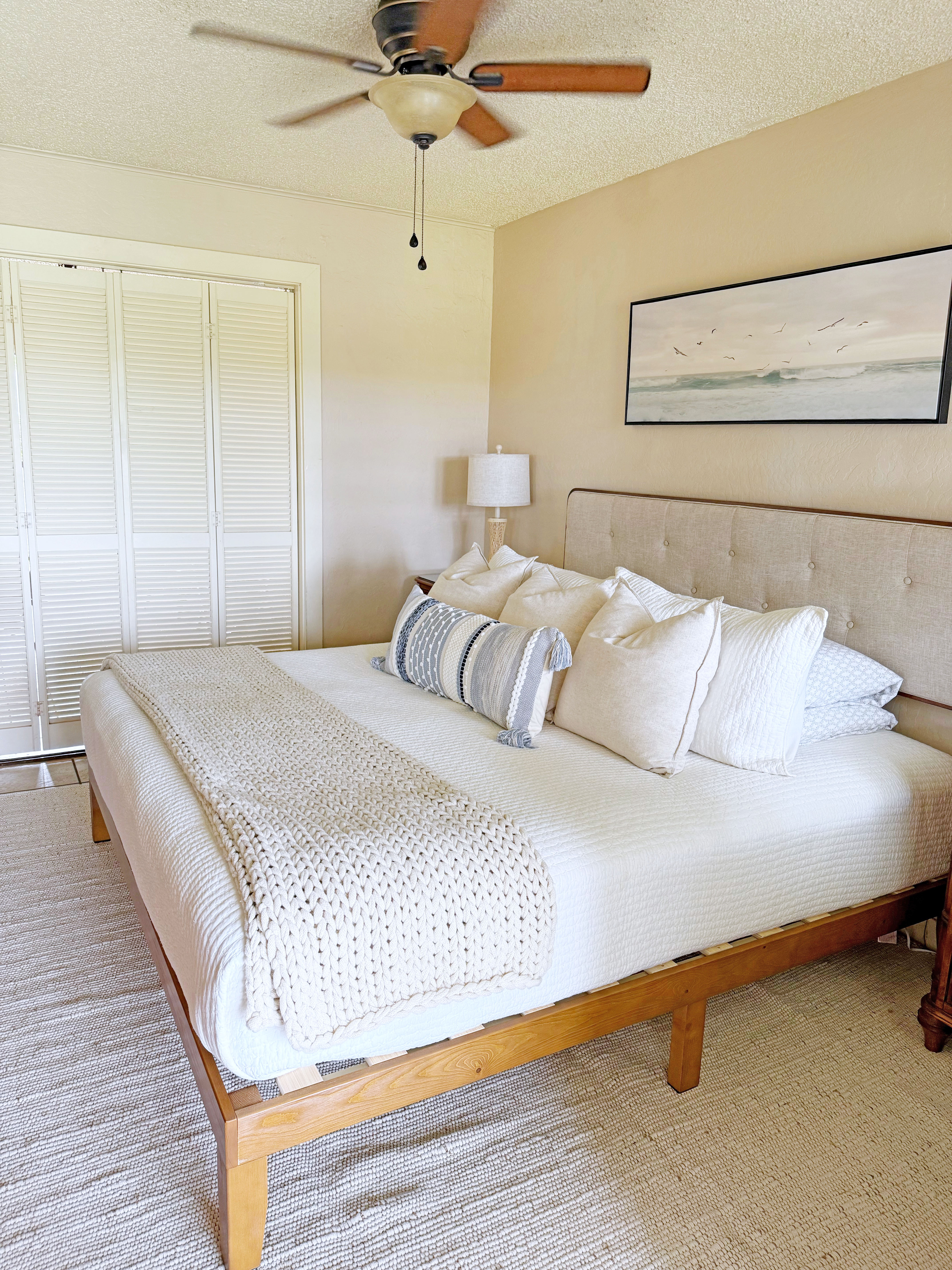 Reviewed on 2020-01-09 by Emily W. , University Place, WAThis was the perfect home away from home! This condo has a fully equipped kitchen which saved us a lot of money, being able to cook and prep meals. The bed was very comfortable, as well as the couch. The beach across the street had great snorkeling! It was very close to shopping and dinning. It was a great location to have as a home base. No AC but honestly didn’t need it. There’s plenty of fans and opening up windows to let the wind through was perfect. It is right next to the road but there’s not much road noise from it. Picking up and dropping off the keys were very easy, and communicating with the property management was easy. Kauai also banned plastic bags and there was a reusable bag for us to use and also take home. As well as an insulated lunch box. (Very thoughtful). Also beach towels, and chairs were there for our use. The pool is very nice and the property is beautiful. We really felt like we had our own little apartment on the island. If this place is available get it!! The only thing I wish we had was a hot tub or bath tub. I was soar after some hiking. So we just got day passes to the Grand Hyatts spa for the day. Worked like a charm and just up the road. Honestly the condo was so affordable we didn’t mind splurging on our trip. It was just 2 of us and we were very comfortable. Next time I think we would be able to bring our 2 small children and split the couch for them. Overall I felt like we scored when we booked this place!