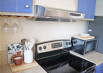 The kitchen is lovely. We loved how you guys did a blue scene like the ocean. The beds are so comfy. Again, the view is beautiful. Thank You